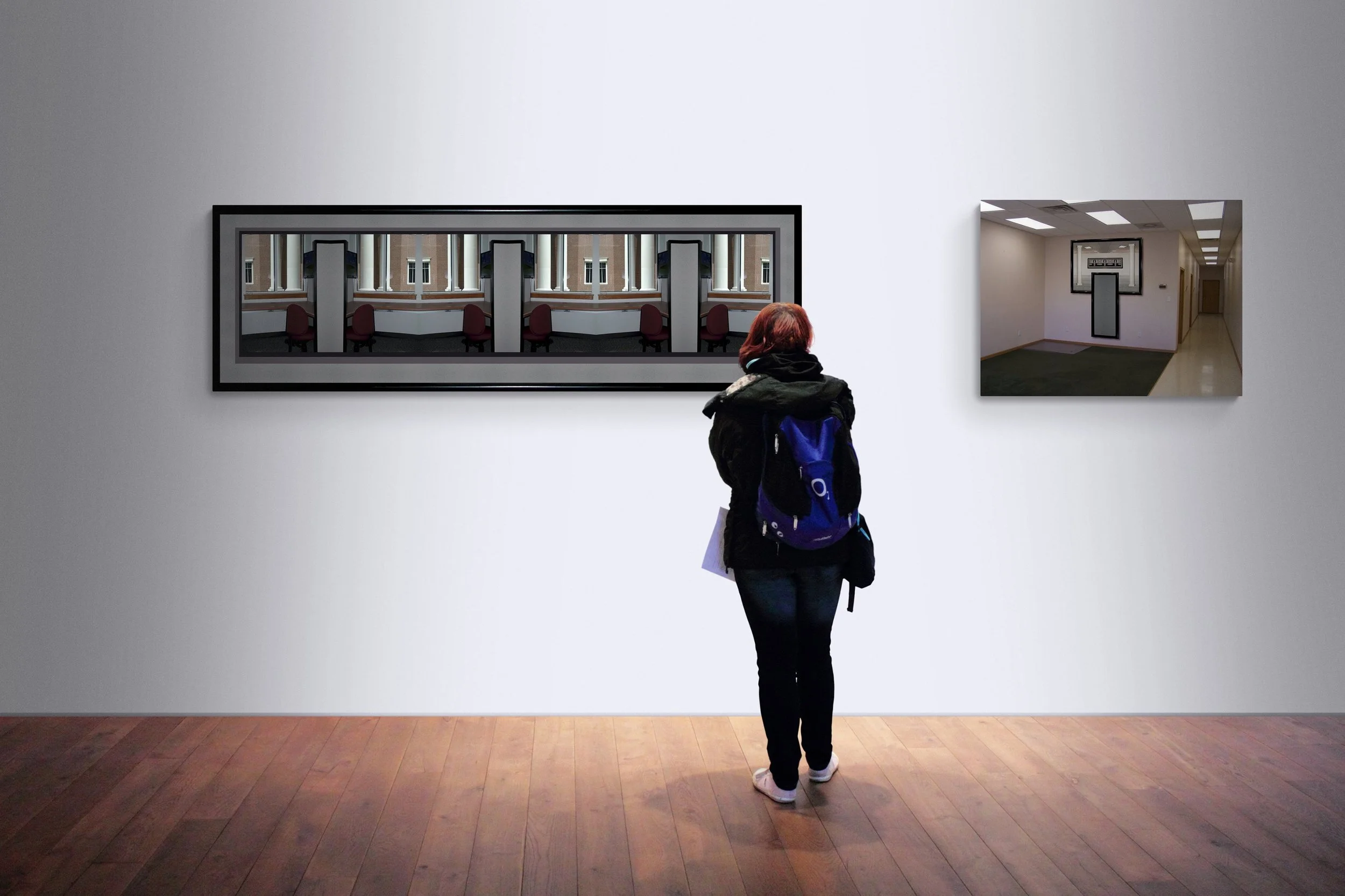 Gallery view of assorted framed photographic prints, various dates and dimensions.